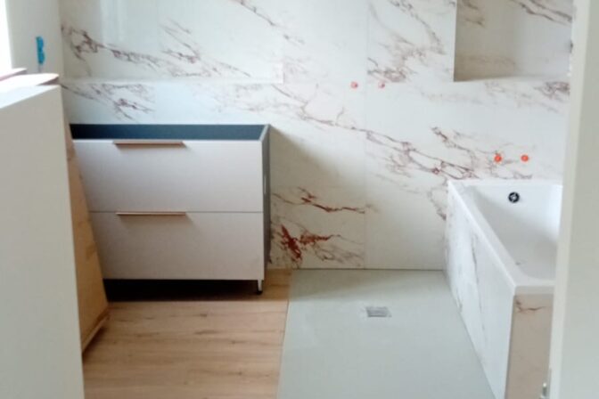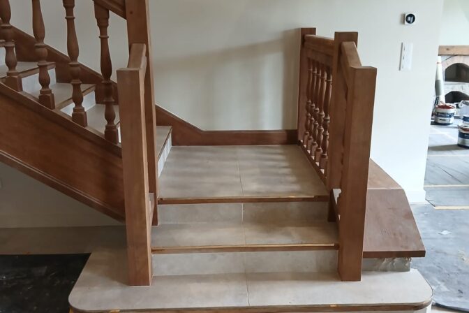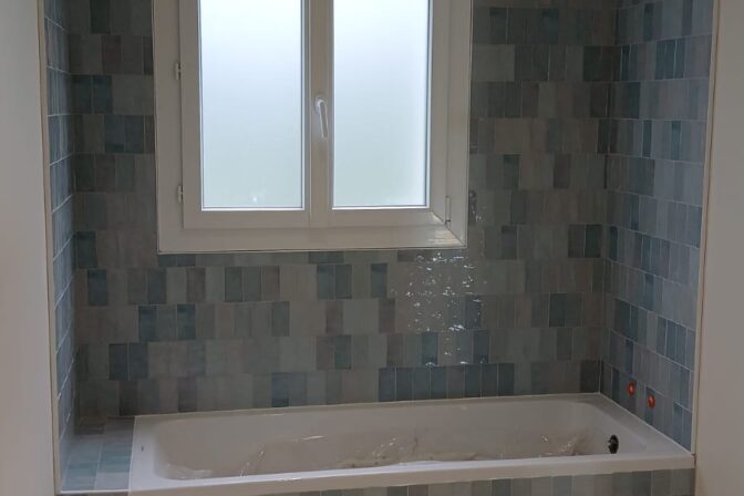 Réalisation d’une rénovation complète dans une maison individuelle, comprenant non seulement la rénovation de plusieurs salles de bains tout en améliorant l’esthétique et la fonctionnalité, mais aussi la transformation des escaliers avec du carrelage de qualité, garantissant ainsi un résultat à la fois moderne et durable.